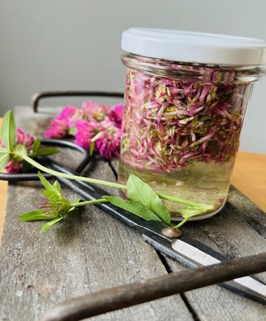 Eine Rotklee Tinktur kann äußerlich und innerlich eingenommen werden.