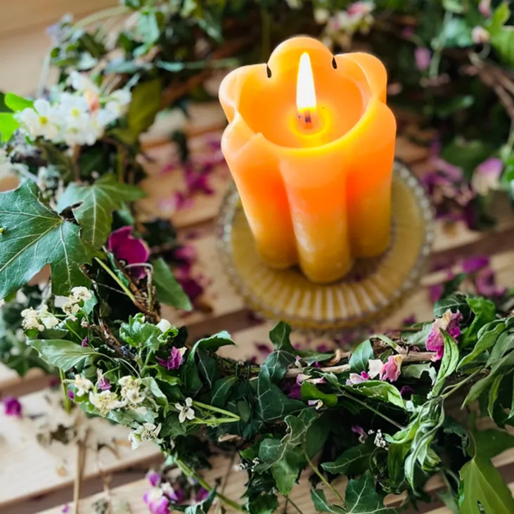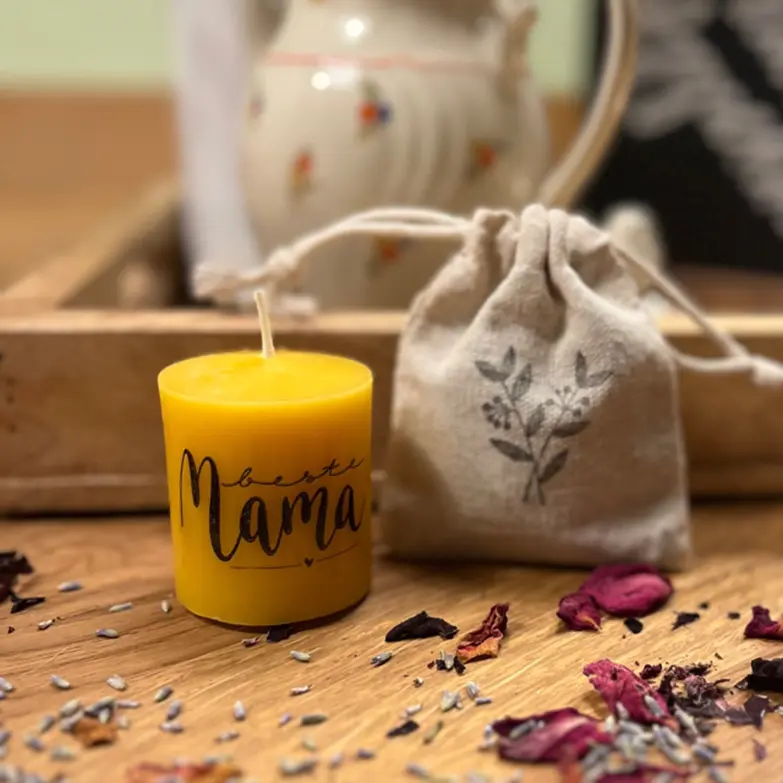 - Dekoriere deine Ritualkerze aus Bienenwachs mit liebevollen Details.